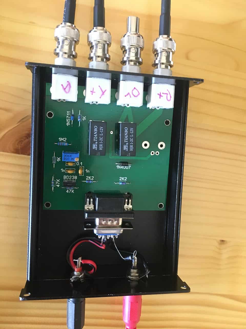 The rest of the system uses a relay box to connect your antenna to both your transmitter and your SDR receiver. It adds a dummy load for terminating the receiver when you’re transmitting. In this way you can use the SDR as receiver and your normal rig as the transmitter.