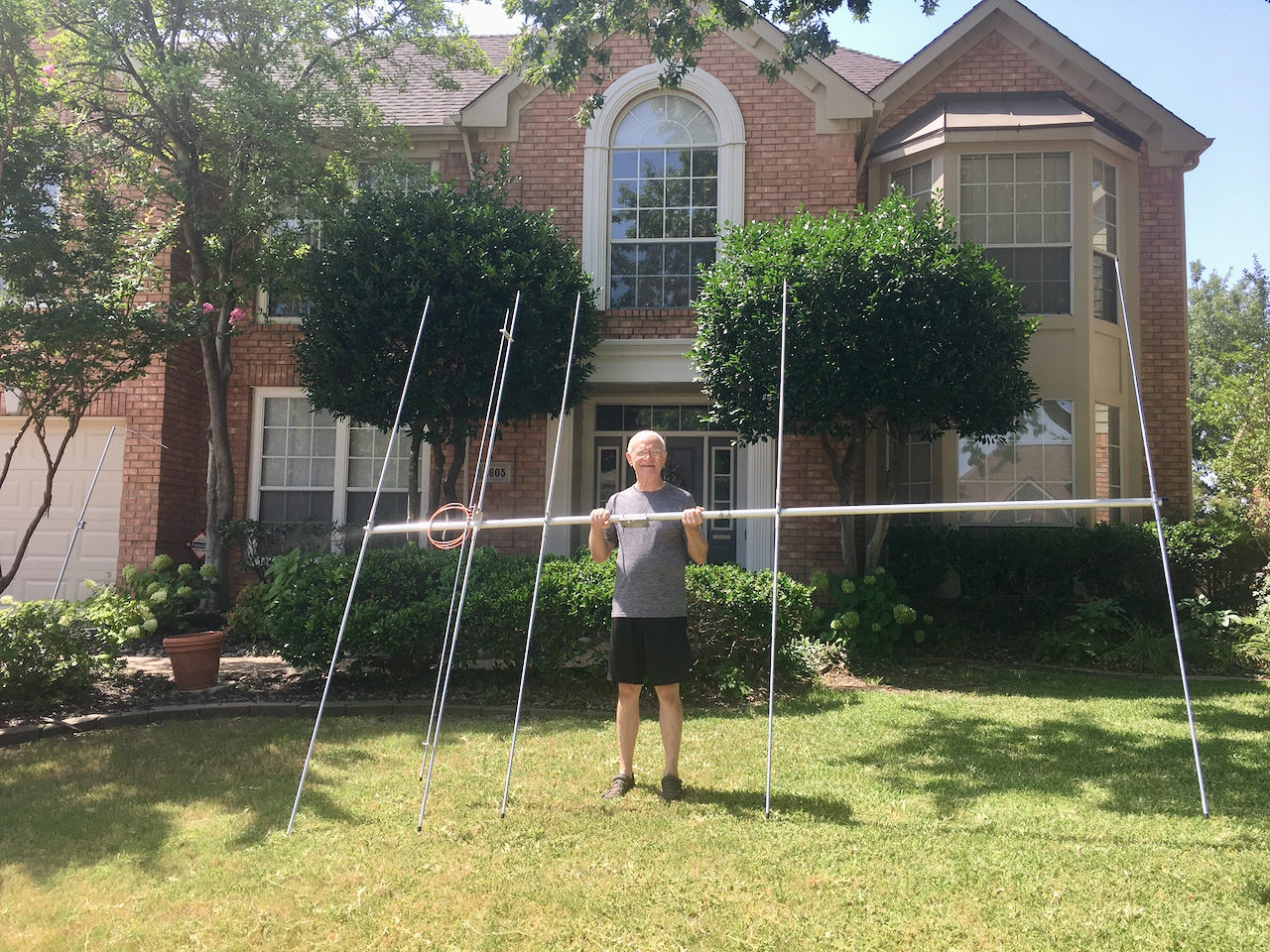 I’ve taken some photos of the current crop of 6-meter antennas in my possession. They include me in the photo to give you a better idea of the size of each of the antennas. They all work, some better than others. But it also doesn’t take much when the band is open.