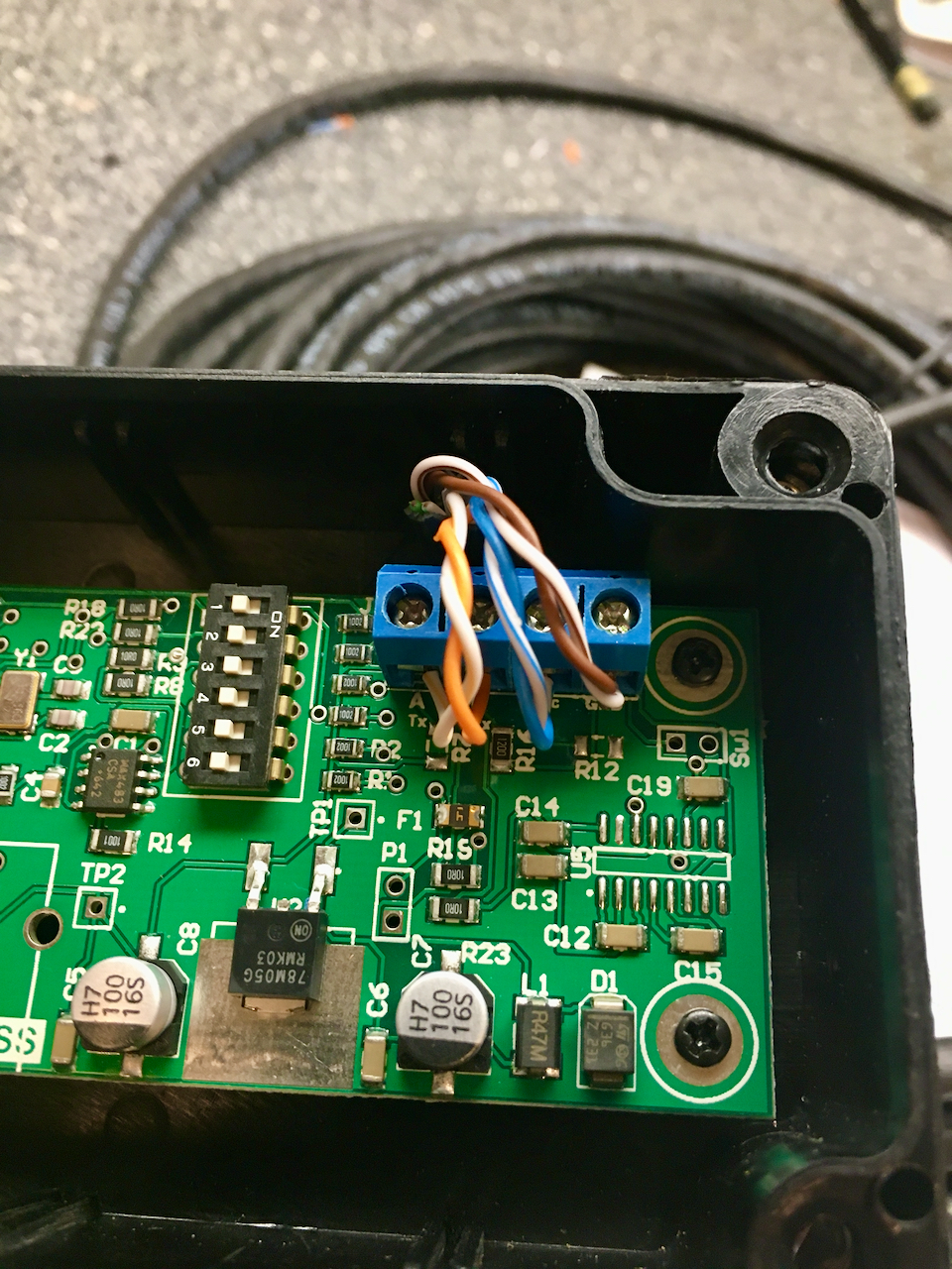 There’s not much to the assembly and the directions are very clear. Mostly it’s finding the necessary length of Cat5/6 cable and connecting one end to the sensor and the other to the RS-485 to USB converter. That’s also where 13.8 VDC is added to the mix.