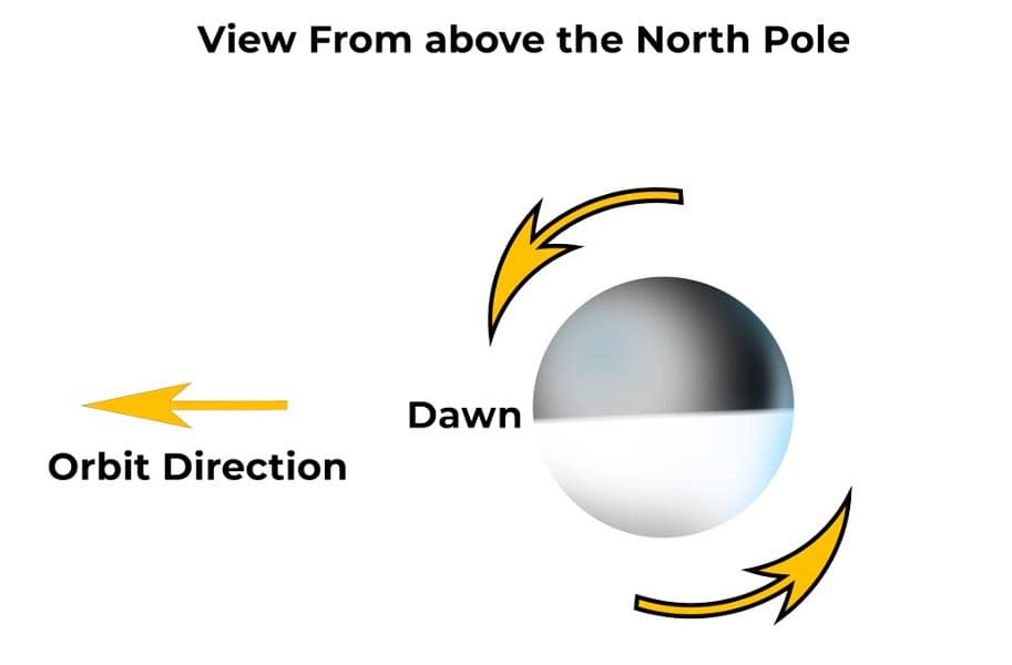 Based on this, the optimal time for meteor scatter propagation is early morning. There is roughly three times more propagation at 6 AM than at 6 PM local time. The reason for this can be observed in the image below. This happens because the Earth’s orbit around the sun drives it into the meteor stream, with the Earth’s rotation aiding that velocity near dawn, rather than reducing it later in the day when meteors are essentially chasing the Earth.