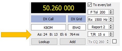 For example, the WSJT window below displays the direct “Az” of 24 degrees compared to the “B” offset heading of 13 degrees when pointing from my grid of EM12 to the station’s grid of EN42. It also shows a recommended elevation. At times, there can be an “A” offset heading for your station. The other station will always have the opposite offset. I’ve see a table that provides a listing of the offset, with the lower distances between stations having the greatest offset.