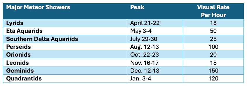All of this happens every day. However, there is a bonus during meteor showers. These predictable comet trails feature a high concentration of meteors and occur annually at specific times of the year. Below, you can see the list of major showers.