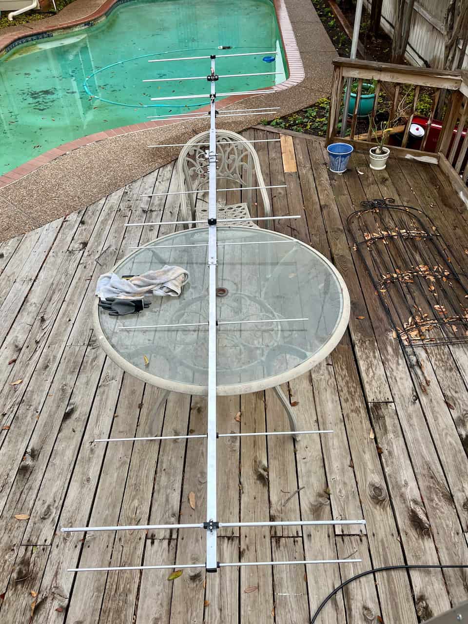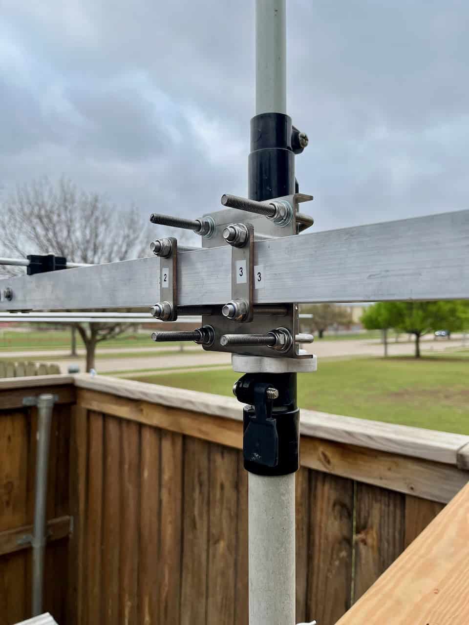 It went together nicely with solid mounts and a sturdy boom. I was somewhat surprised by the boom’s strength and weight. Even so, at 14 feet long and weighing 14.5 lbs, the antenna is about 5 pounds lighter than my previous two antennas. Additionally, it occupies only one position on the mast, which reduces wind loading.