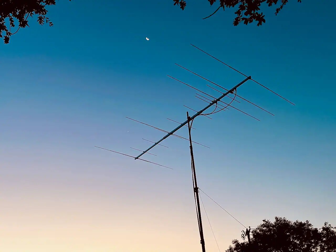 Another benefit of working from home is that operating two rigs and using my better home antennas is much easier. I used an Icom IC-746Pro for 2 meters along with an Icom IC-9100 for 6 meters. The receivers for both setups use Airspy SDRs and Antennas-Amplifiers LNAs. The antennas include a 5-element 6-meter Yagi and a 9-element 2-meter Yagi on a common boom mounted on a 25-foot push-up mast. The downside is that I have to run down the stairs and outside to hand rotate the mast. It’s actually much easier when running portable.