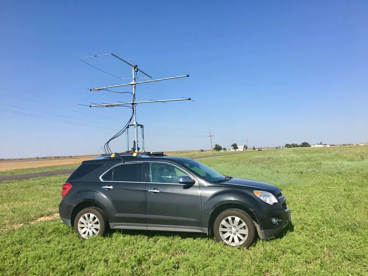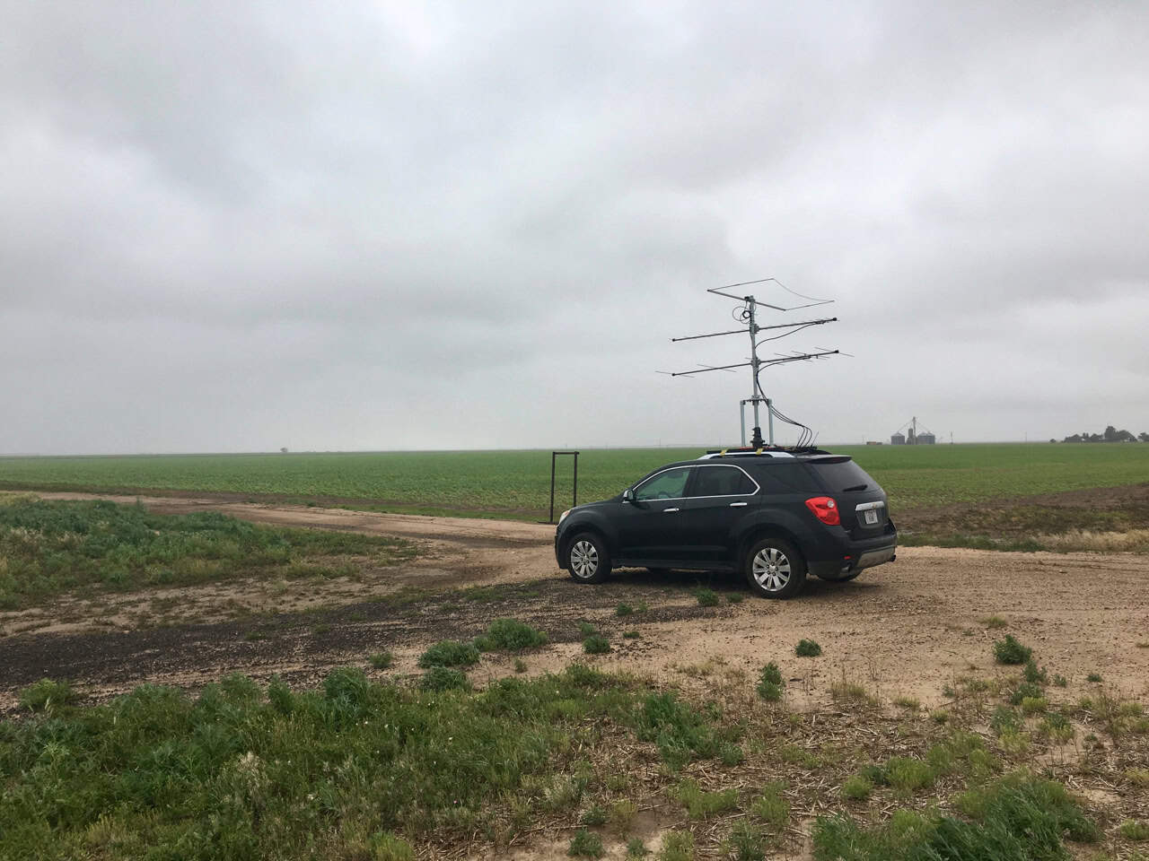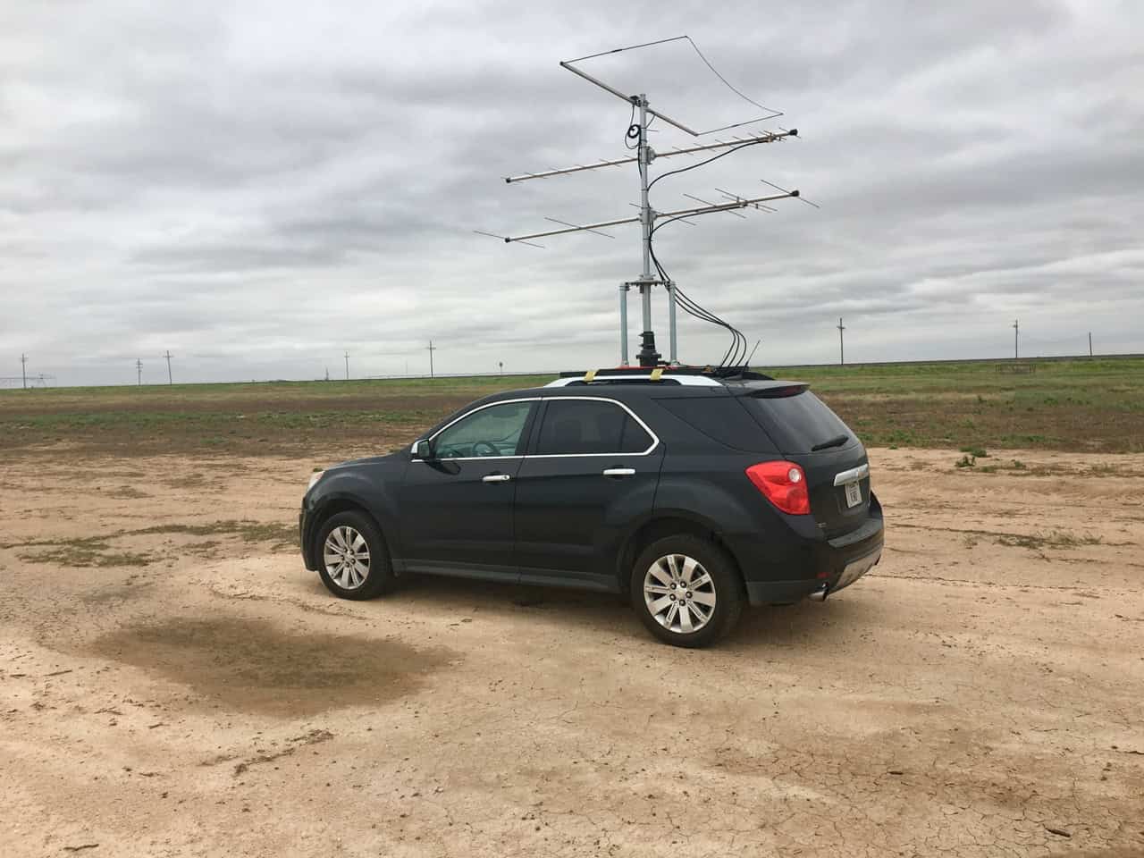 After spending the night at my daughter’s place in Amarillo, I headed north into 40 mph winds and light mist with temps in the 50s. The wind and road speed tested the rooftop antennas. But they held together and I found all my previously scouted grid spots.